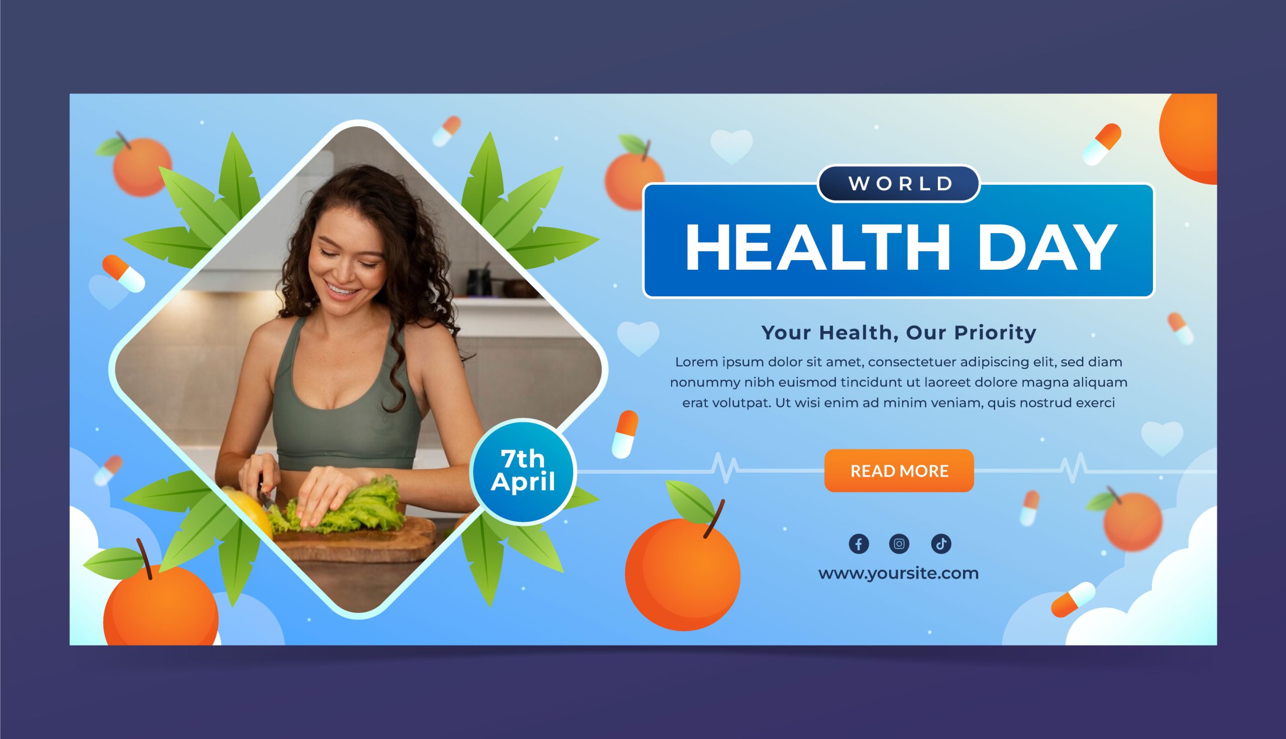 Soft green tones and natural imagery create an uplifting banner for fitness clubs, organic stores, or health campaigns promoting balance and vitality.