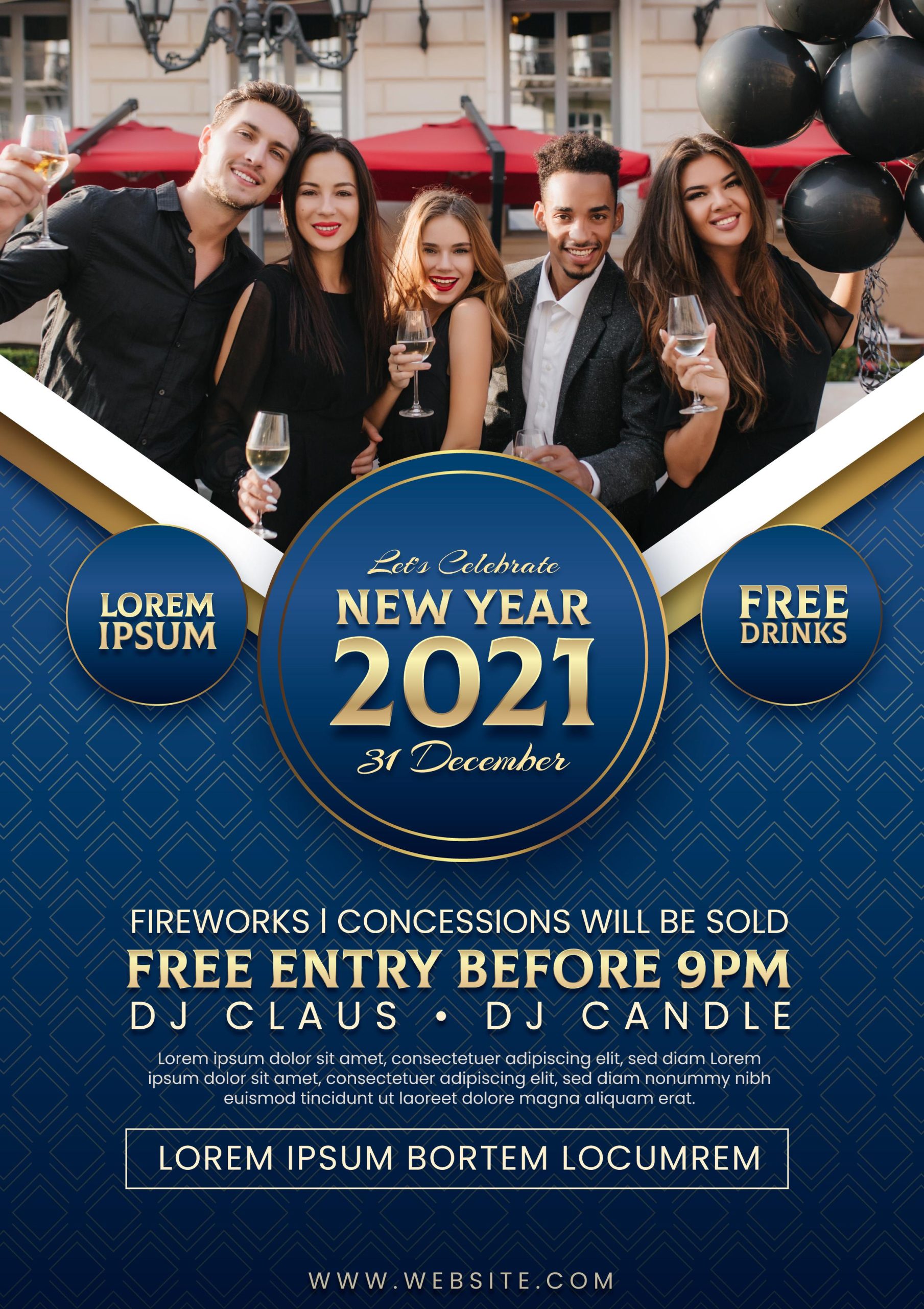 Gold accents and deep navy tones evoke sophistication and style, ideal for galas, hotel events, or corporate celebrations.