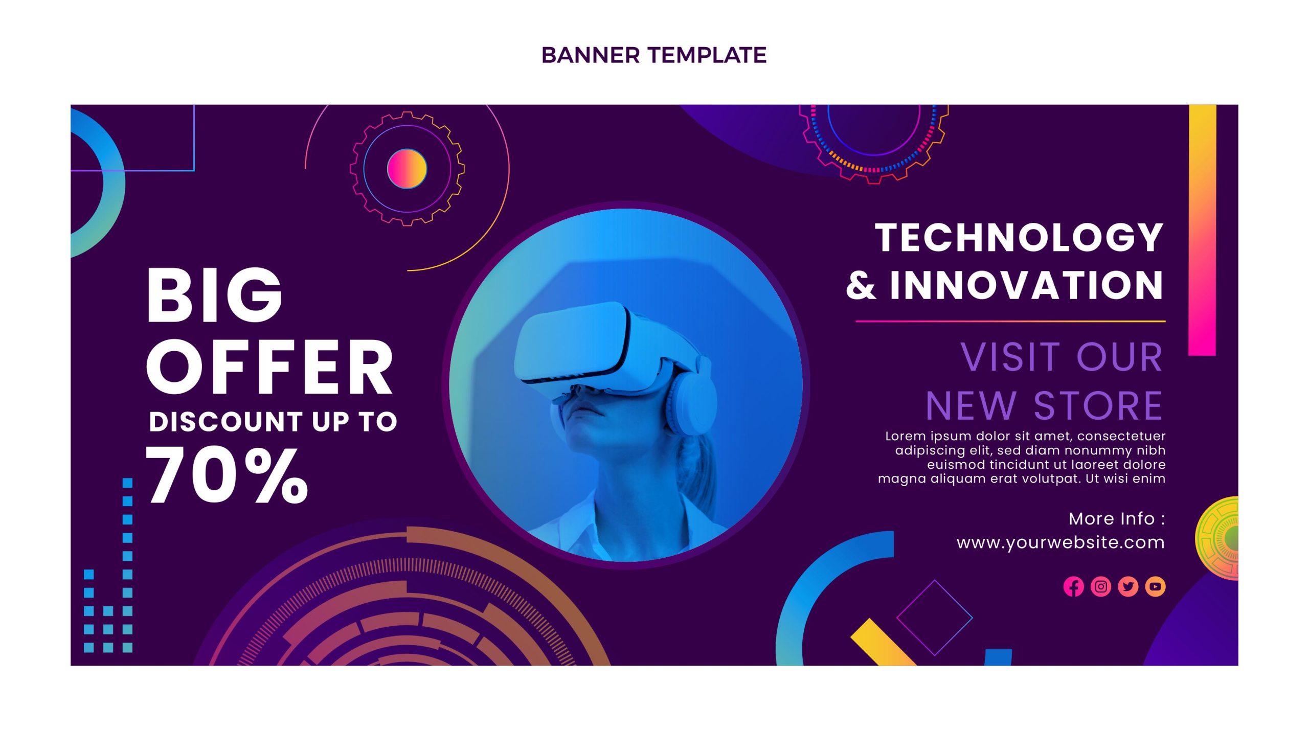 Designed with neon tones and sleek geometric visuals, this banner grabs attention for tech events, product launches, or digital innovation campaigns.